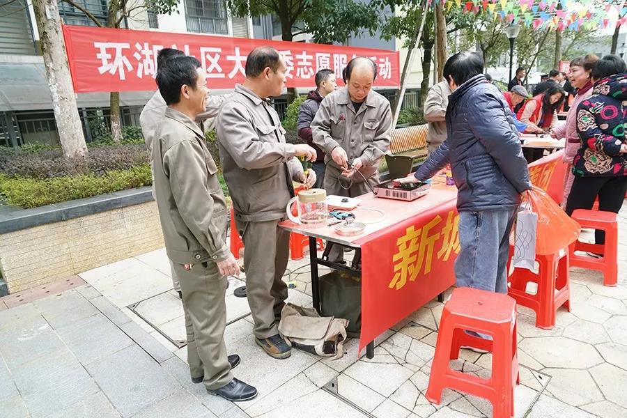 在新春佳節(jié)即將來臨之際,為深入助力文明城區(qū)創(chuàng)建,提升居民幸福感,營造春節(jié)的節(jié)日氣氛,1月23日上午,新城投資集團(tuán)黨支部聯(lián)合環(huán)湖社區(qū)黨支部、宏謀物業(yè)公司在國惠村開展了“便民服務(wù)驛站”國惠村專場暨“喜迎新春寫對聯(lián) 書香情滿送祝?!被顒?dòng),為居民維修家電,送上春聯(lián),帶去節(jié)日的問候。新城投資集團(tuán)黨支部書記周道林,副書記鄧仁友,工會(huì)主席譚力源,環(huán)湖社區(qū)黨支部書記李伊倩,宏謀物業(yè)公司總經(jīng)理劉孝國出席了活動(dòng)。1