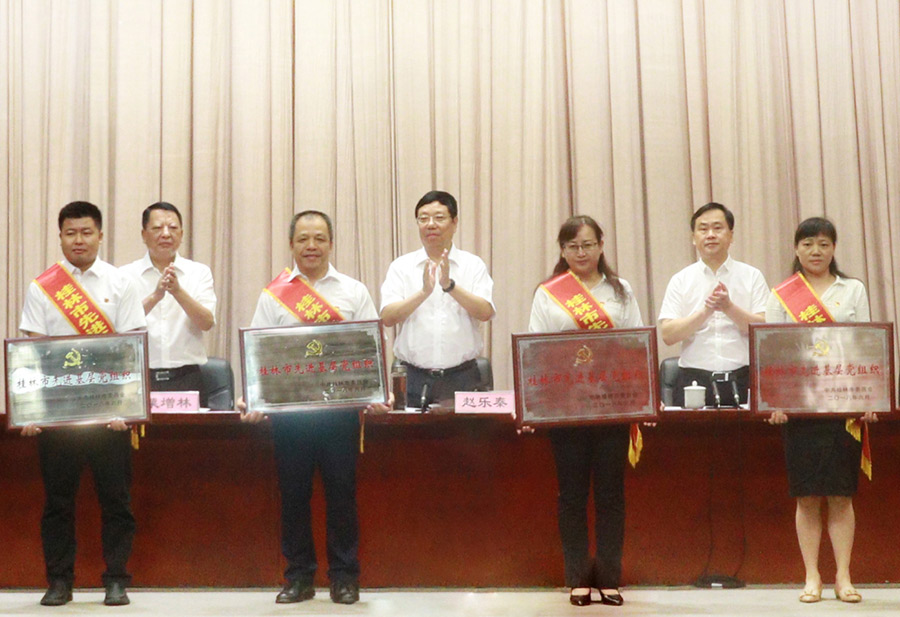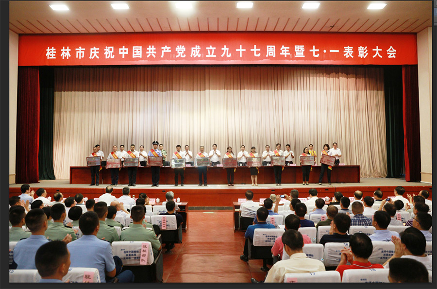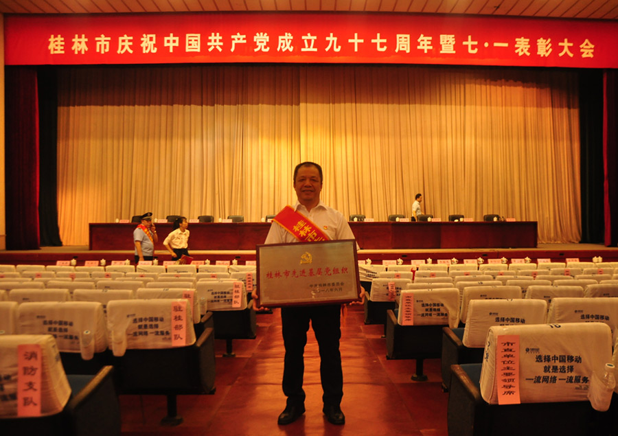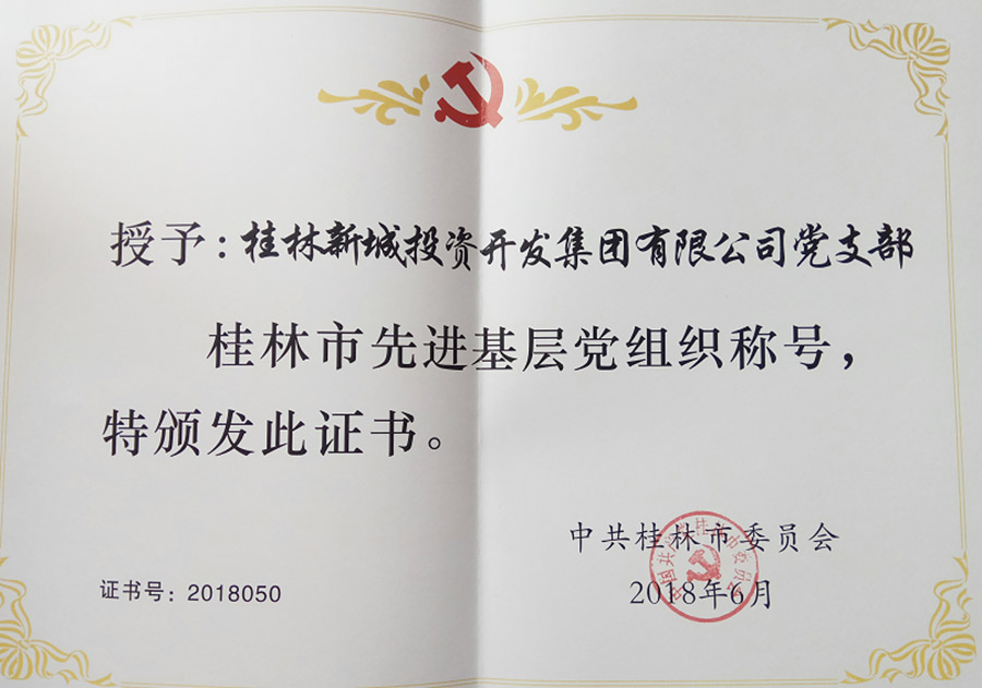 2018年6月29日上午,在桂林市直機(jī)關(guān)小禮堂舉行的桂林市慶祝中國共產(chǎn)黨成立九十七周年暨七·一表彰大會(huì)上,表揚(yáng)了全市先進(jìn)基層黨組織、優(yōu)秀共產(chǎn)黨員、優(yōu)秀黨務(wù)工作者,新城投資集團(tuán)黨支部榮獲“桂林市先進(jìn)基層黨組織”稱號(hào),黨支部書記周道林代表新城投資集團(tuán)黨支部參加了此次表彰大會(huì)。