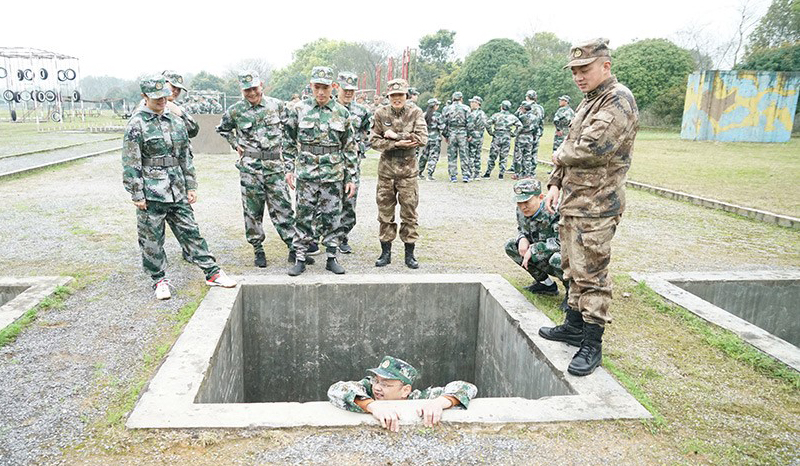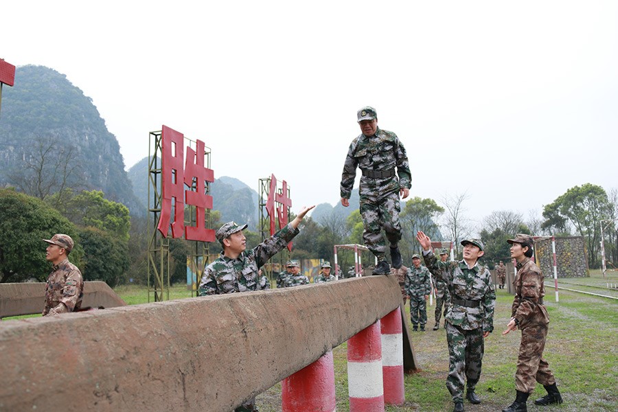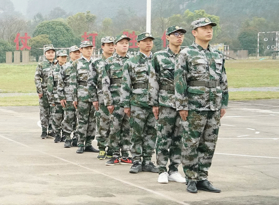 抵達訓(xùn)練場地后,全體人員換上迷彩服,拉開了一天封閉軍訓(xùn)的序幕。