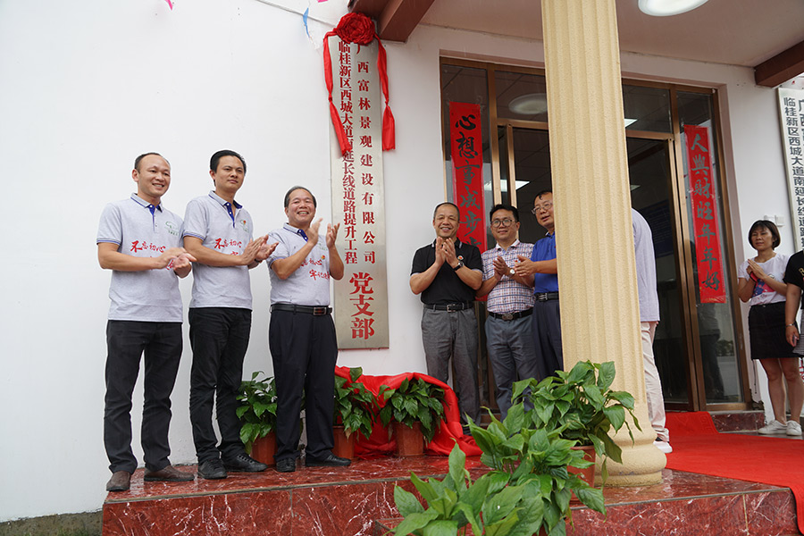 為了進(jìn)一步發(fā)揮基層黨組織戰(zhàn)斗堡壘作用,加快推進(jìn)項(xiàng)目建設(shè),6月26日下午,在西城大道南延長線項(xiàng)目現(xiàn)場,舉行了“廣西富林景觀建設(shè)有限公司臨桂新區(qū)西城大道南延長線道路提升工程黨支部”揭牌活動。