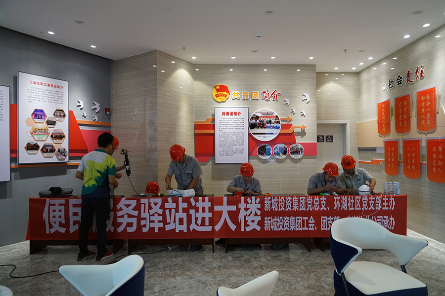 在中華人民共和國成立70周年即將來臨之際,9月30日上午,新城投資集團(tuán)黨總支聯(lián)合環(huán)湖社區(qū)黨支部、宏謀物業(yè)公司在新城投資集團(tuán)辦公大樓一樓舉辦“‘不忘初心、牢記使命’便民服務(wù)驛站進(jìn)大樓志愿服務(wù)活動(dòng)”,為在本大樓辦公的總工會(huì)、水利局、司法局員工提供小家電維修服務(wù),黨員以實(shí)際行動(dòng)踐行為身邊群眾辦實(shí)事、辦好事。活動(dòng)在新城投資集團(tuán)黨總支、環(huán)湖社區(qū)黨支部全體黨員合唱的《我和我的祖國》歌聲中啟動(dòng),大家用嘹亮的歌聲、真摯的情感抒發(fā)出對(duì)偉大祖國的最美好的祝愿!集團(tuán)黨總支籌備工作領(lǐng)導(dǎo)小組組長、董事長周道林,黨總支籌備工作領(lǐng)導(dǎo)小組副組長、副總經(jīng)理鄧仁友,環(huán)湖社區(qū)第一書記蔡燕,環(huán)湖社區(qū)黨支部書記、居委會(huì)主任李伊倩出席了活動(dòng)。