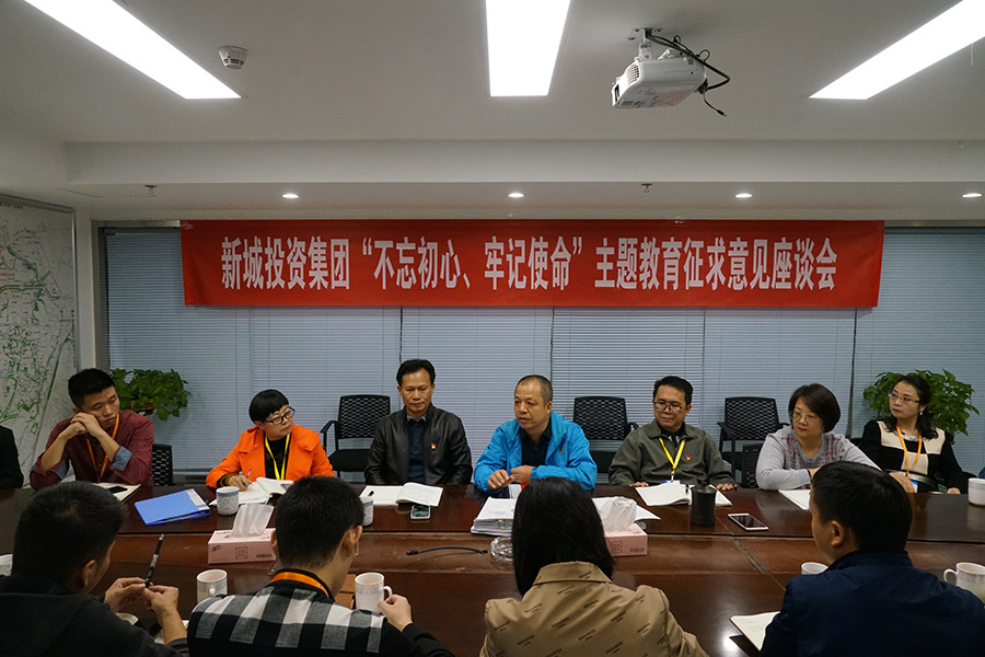10月25日,根據開展“不忘初心、牢記使命”主題教育工作部署,新城投資集團召開了征求意見座談會,聽取與會人員對班子成員存在突出問題的反映,以及對改進工作作風、改進工作的意見建議。會議由主題教育領導小組組長、董事長周道林主持,班子成員及各部室、子公司負責人參加座談會。