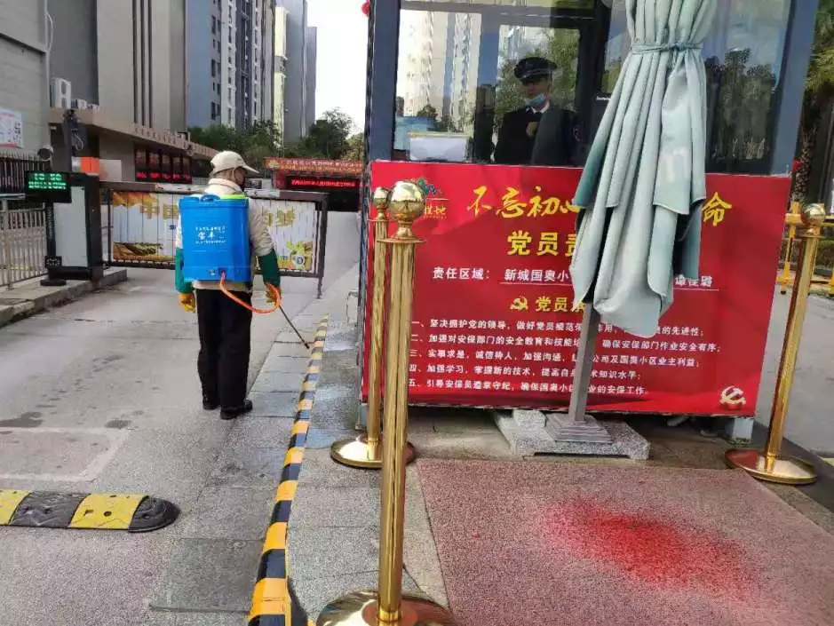 對(duì)所管項(xiàng)目的室內(nèi)場所實(shí)行全面消毒。對(duì)出入門禁、康體設(shè)施、地下車庫、電梯、垃圾中轉(zhuǎn)站等關(guān)鍵區(qū)位噴灑消毒水;使用醫(yī)用酒精、84消毒液等消毒劑擦拭兒童娛樂設(shè)施、公共通道的門把手、開關(guān)、按鍵等。針對(duì)人流密集的項(xiàng)目加大消毒頻次。