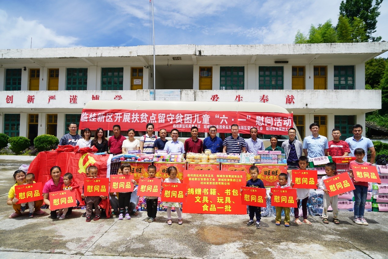 為關(guān)注扶貧村兒童的健康成長,讓他們過上快樂而有意義的“六一”兒童節(jié),6月1日,臨桂新區(qū)管委機關(guān)黨總支、新城投資集團黨總支、臨桂新區(qū)管委會工會、新城投資集團工會聯(lián)合組成慰問組到資源縣兩水苗族鄉(xiāng)煙竹村扶貧點舉辦扶貧點留守貧困兒童“六?一”慰問活動,給山區(qū)兒童送上節(jié)日祝福。