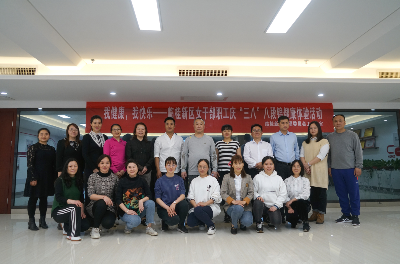 3月19日,在公司辦公大樓職工之家,工會(huì)組織職工積極報(bào)名參加了臨桂新區(qū)管委工會(huì)舉辦的“我健康,我快樂”八段錦健康體驗(yàn)活動(dòng)。在老師耐心地講解之下,大家領(lǐng)略到八段錦傳統(tǒng)文化精髓的獨(dú)特魅力。通過此次體驗(yàn)活動(dòng),職工們了解了“八段錦”的健身、養(yǎng)生功用,表示今后要增強(qiáng)健身意識(shí),工作之余抽出時(shí)間堅(jiān)持練習(xí),在健身中尋求快樂,在工作中收獲幸福。