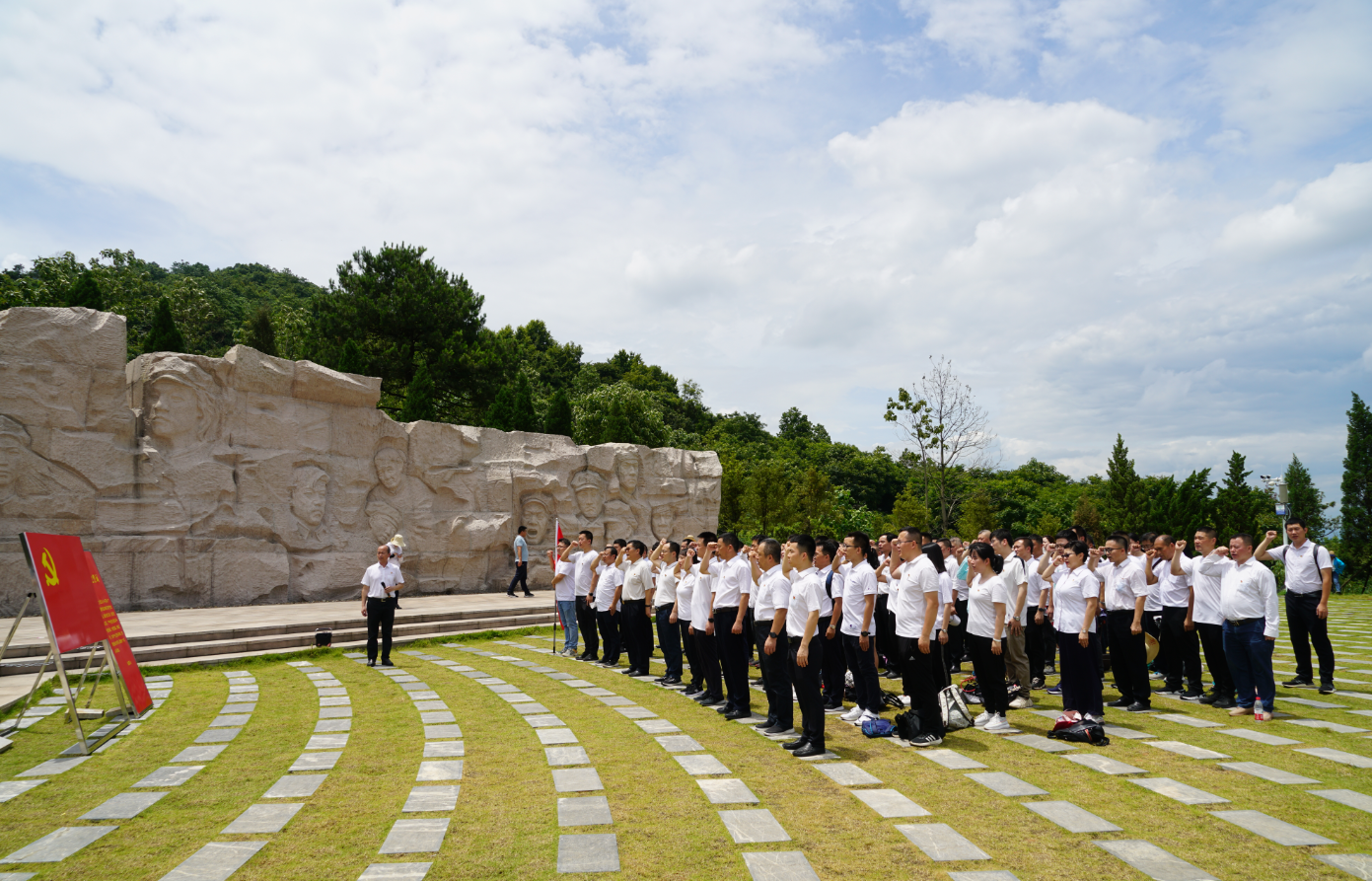 “一山一石一忠魂,一草一木一豐碑”。在紅軍長征湘江戰(zhàn)役紀(jì)念園憑吊廣場,“紅軍魂”雕塑巍然聳立,全體黨員向在湘江戰(zhàn)役中英勇犧牲的紅軍烈士默哀,敬獻花籃并三鞠躬,表達對革命烈士的深切緬懷和無限敬仰。面對鮮艷的中國共產(chǎn)黨黨旗,大家莊嚴(yán)列隊,重溫入黨誓詞,用錚錚誓言表達矢志不渝守初心、奮發(fā)有為擔(dān)使命的堅定信念。