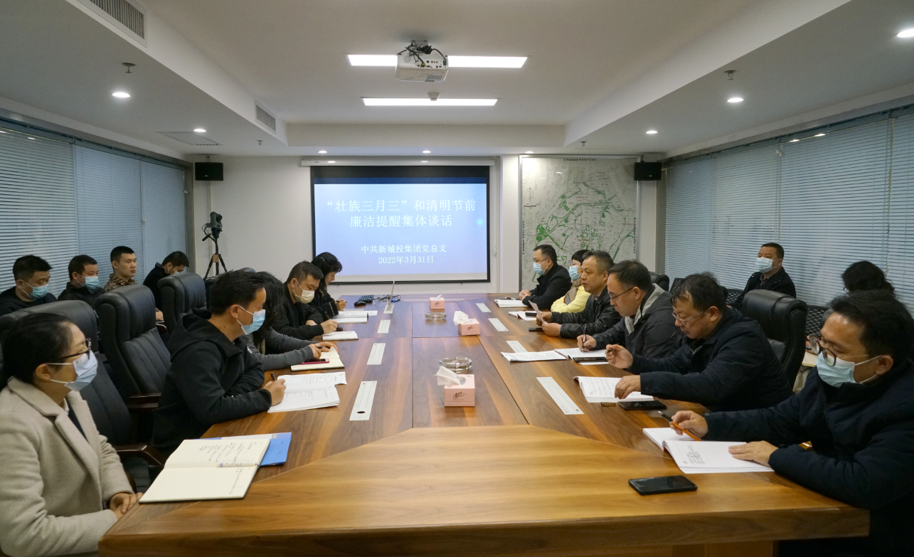 為深入貫徹落實中央、自治區(qū)持之以恒糾“四風(fēng)”樹新風(fēng)部署要求,嚴(yán)防“四風(fēng)”問題反彈回潮,推動移風(fēng)易俗, 2022年3月31日,新城投集團召開“壯族三月三”和清明節(jié)前廉潔提醒集體談話會。集團黨總支書記、董事長周道林主持會議,并就落實上級要求對集團領(lǐng)導(dǎo)班子成員、各部室子公司負責(zé)人進行廉政提醒。