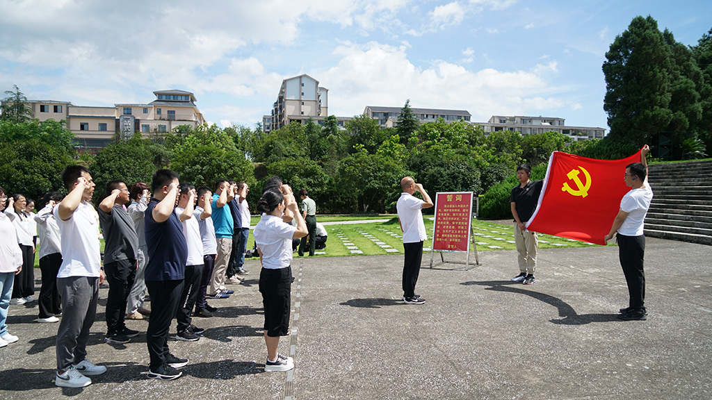 青山處處埋忠骨,何須馬革裹尸還。黨員們首先來(lái)到湘江戰(zhàn)役紀(jì)念碑前,向烈士紀(jì)念碑敬獻(xiàn)花籃并深深地三鞠躬,以表對(duì)革命烈士最崇高的敬意,黨員同志面向黨旗重溫入黨誓詞,追憶入黨初心。