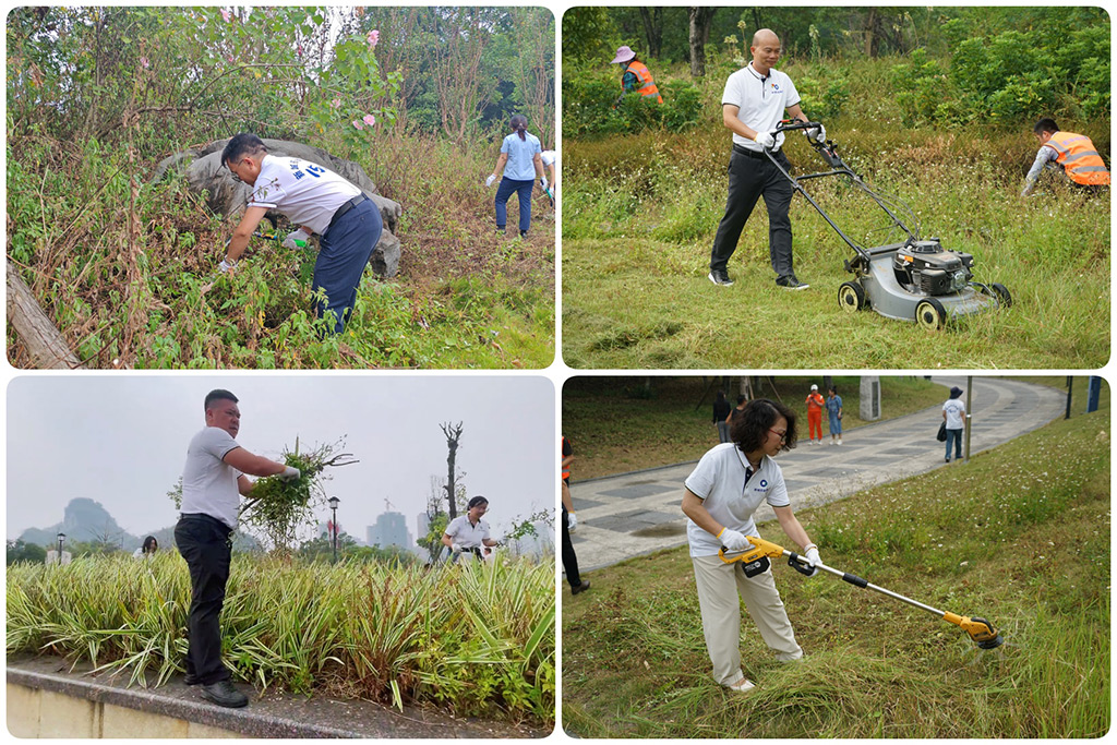 山水公園作為桂林新區(qū)的一張亮麗名片,承載著展現(xiàn)城市風貌的重要使命。在國內(nèi)經(jīng)濟下行、財政支持相對不足的情況下,桂林新城投資開發(fā)集團有限公司(簡稱“新城投集團”)勇挑重擔,為政府承擔起公園日常維護之責。2024年10月14日新城投集團立足自身實際,充分發(fā)揮黨組織戰(zhàn)斗堡壘作用和黨員先鋒模范作用,廣泛動員黨員干部沖鋒在前,以實際行動踐行初心使命,積極開展“黨旗映勝地,清潔我先行,為山水公園洗臉”主題黨日活動,這一行動,既為了維護桂林的良好形象,又切實保障了市民的生活舒適度。集團黨委副書記(主持工作)、副董事長、總經(jīng)理朱毅攜公司領(lǐng)導班子成員黨委副書記兼紀委書記譚力源,黨委委員、董事、副總經(jīng)理葉青旺,黨委委員、董事、副總經(jīng)理何萌,董事、副總經(jīng)理劉敏,第一、第二、第三黨支部全體黨員(含預備黨員)、發(fā)展對象、入黨積極分子、遞交入黨申請書員工共100余名黨員干部參加活動。