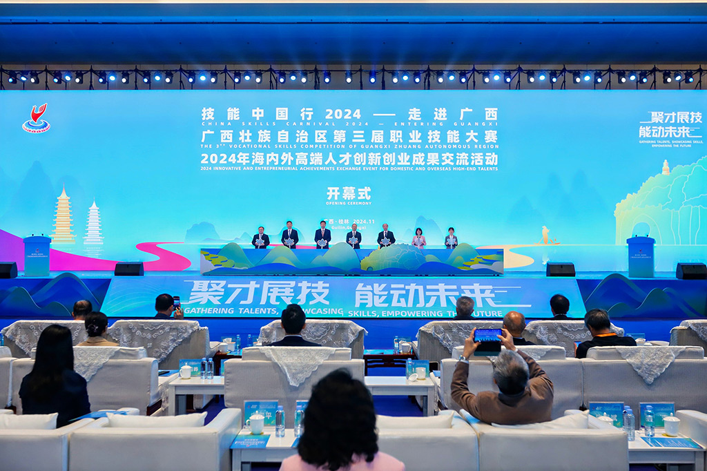 11月8日至11日,以“聚才展技 能動未來”為主題的“技能中國行——2024走進廣西”、廣西壯族自治區(qū)第三屆職業(yè)技能大賽以及2024年海內(nèi)外高端人才創(chuàng)新創(chuàng)業(yè)成果交流活動在桂林國際會展中心隆重舉辦。