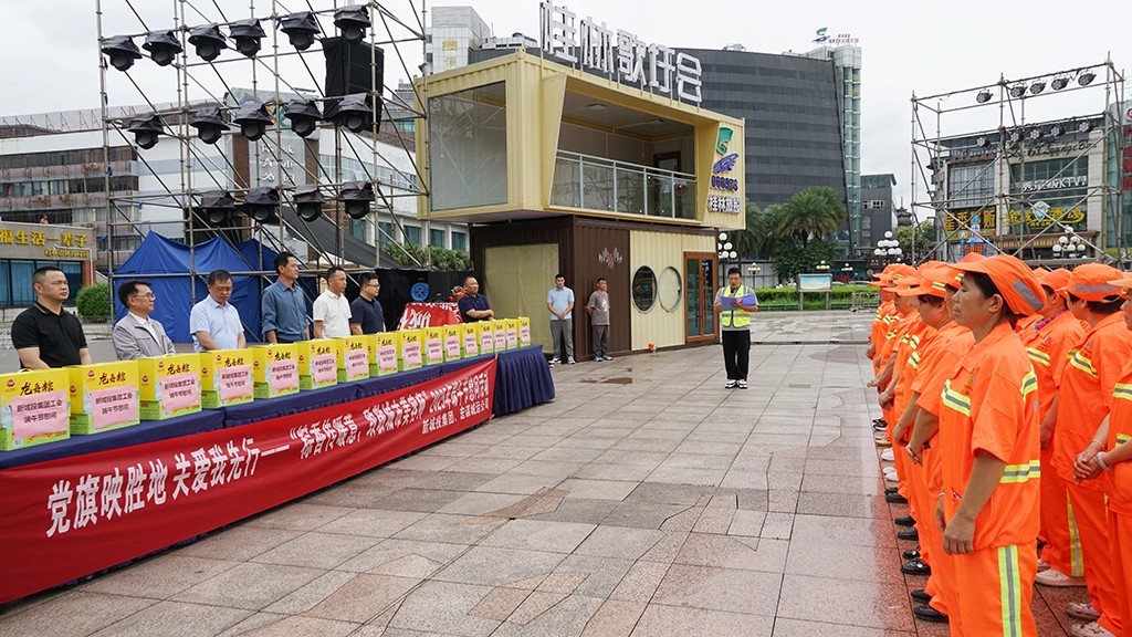 為深入踐行習(xí)近平總書記“以人民為中心”“勞動最光榮”的指導(dǎo)思想,切實把組織關(guān)懷送到基層勞動者心坎上,進一步提升環(huán)衛(wèi)職工隊伍的職業(yè)認同感和幸福感,2025年5月29日端午節(jié)前夕,新城投集團聯(lián)合宏謀城運公司在秀峰區(qū)中心廣場舉辦“粽香傳暖意,致敬城市美容師”端午節(jié)慰問活動。此次活動得到市城管委,秀峰區(qū)政府、城管局、環(huán)衛(wèi)站的大力支持與指導(dǎo)。市城管委黨組成員、副主任蔣毅出席活動。受新城投集團黨委書記、董事長朱毅委托,黨委副書記、紀委書記、工會主席譚力源代表集團黨委、領(lǐng)導(dǎo)班子及全體職工,向奮戰(zhàn)在環(huán)衛(wèi)一線的干部職工致以節(jié)日問候。