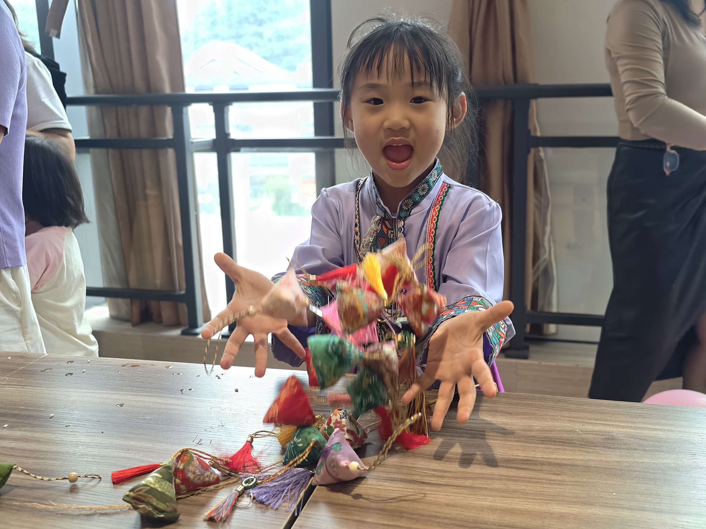 同時,大家在歡快的氛圍中集體移步至“非遺香囊”區(qū)。在這里,冠軍組憑借出色的表現(xiàn)獲得了優(yōu)先挑選香囊的特權(quán),其余組別則按照游戲總分排名依次挑選心儀的香囊。大家通過端午節(jié)香包深入了解中國各民族在端午節(jié)制作、佩戴香囊的悠久歷史和豐富的非遺傳承文化,感受到傳統(tǒng)文化的獨特魅力。活動現(xiàn)場還準(zhǔn)備了豐富的下午茶糕點、粽子等美食,讓大家在享受文化體驗的同時,也能滿足味蕾的享受。