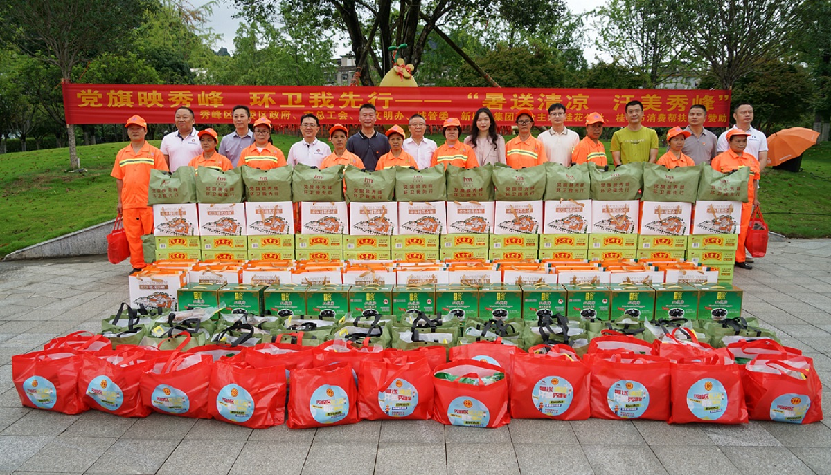 活動現(xiàn)場,與會領(lǐng)導(dǎo)向環(huán)衛(wèi)工人發(fā)放綠豆、涼茶等消暑慰問品,并贈送“夏日清涼關(guān)懷包”,為炎炎夏日堅守崗位的環(huán)衛(wèi)工人送去絲絲清涼。領(lǐng)導(dǎo)們與職工親切交流,詳細了解其工作與身體狀況,叮囑大家增強安全防護意識,合理調(diào)整作業(yè)時間,切實做好防暑降溫,確保身心健康與作業(yè)安全。秀峰環(huán)衛(wèi)項目職工備受鼓舞,紛紛表示:“環(huán)衛(wèi)工人哪里去?還是要去秀峰區(qū)”!