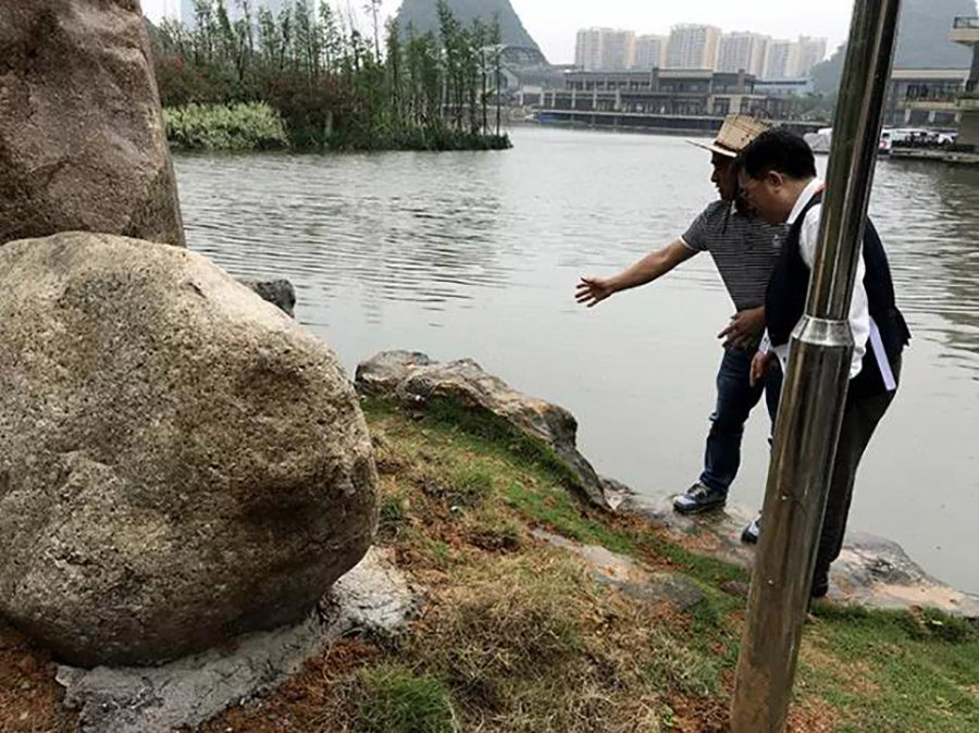 緊接著,檢查組冒雨檢查臨桂新區(qū)橋梁標(biāo)識(shí)石的牢固情況。在現(xiàn)場(chǎng)聽(tīng)取施工人員的介紹后,檢查組提出進(jìn)入雨季后,降雨頻繁,要適時(shí)加強(qiáng)對(duì)橋梁標(biāo)識(shí)石的沉降觀察,以確保基礎(chǔ)的安全、穩(wěn)固。