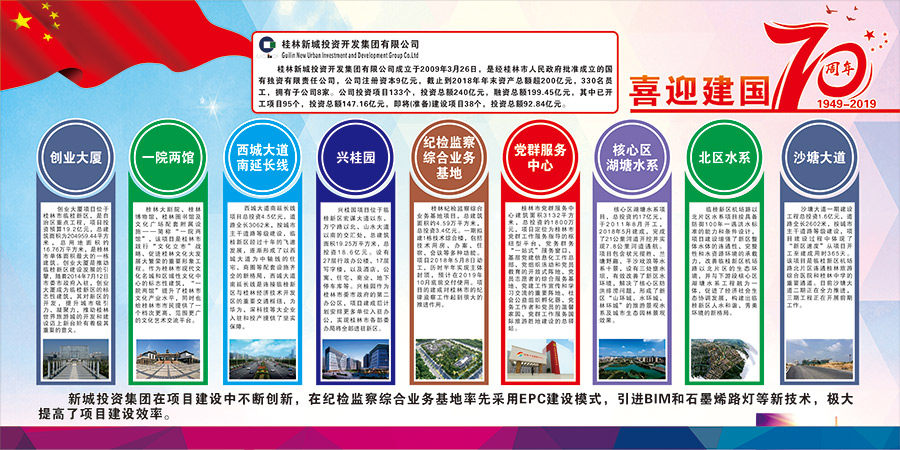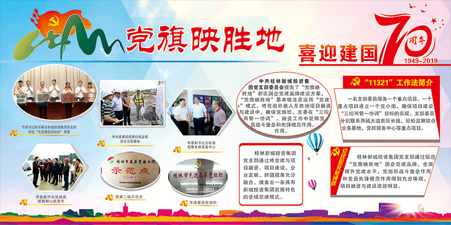 新城投資集團(tuán)黨總支精心組織選送慶祝中華人民共和國(guó)成立70周年國(guó)資國(guó)企改革發(fā)展成就展板報(bào)比賽參賽作品。展板作品充分展現(xiàn)了新城投資集團(tuán)黨總支在“黨旗映勝地”黨建品牌打造過程中,不忘初心,牢記使命,鍛造“真抓實(shí)干強(qiáng)擔(dān)當(dāng),全力以赴推項(xiàng)目”的項(xiàng)目建設(shè)精神;集團(tuán)黨總支充分運(yùn)用“全域黨建管控新模式”,創(chuàng)立“11321”工作法解決工地實(shí)際難題;在紀(jì)檢監(jiān)察綜合業(yè)務(wù)基地率先采用EPC建設(shè)模式,引進(jìn)BIM和石墨烯路燈等新技術(shù),極大提高了項(xiàng)目建設(shè)效率,譜寫了“新區(qū)騰飛,黨建新篇”。