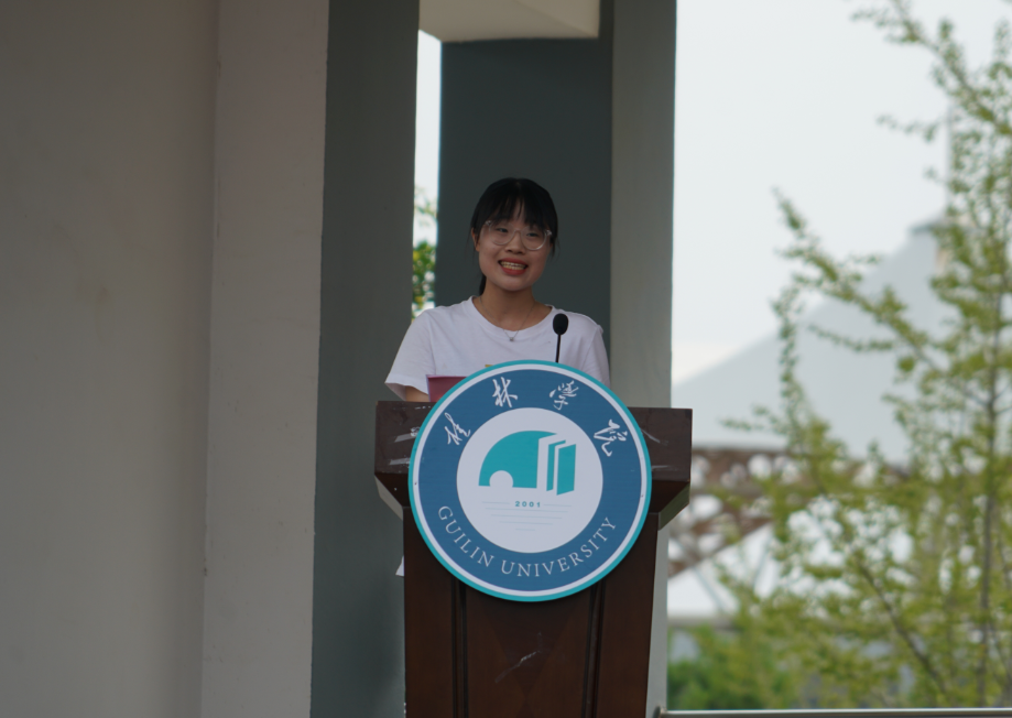 “云中的神啊,霧中的仙,神姿仙態(tài)桂林的山!情一樣深啊,夢一樣美,如情似夢漓江的水!水幾重啊,山幾重?水繞山環(huán)桂林城……”,周道林以中國當(dāng)代詩人賀敬之的《桂林山水歌》為開場白,向從五湖四海來到桂林學(xué)院的莘莘學(xué)子們表達(dá)最誠摯的問候與歡迎。