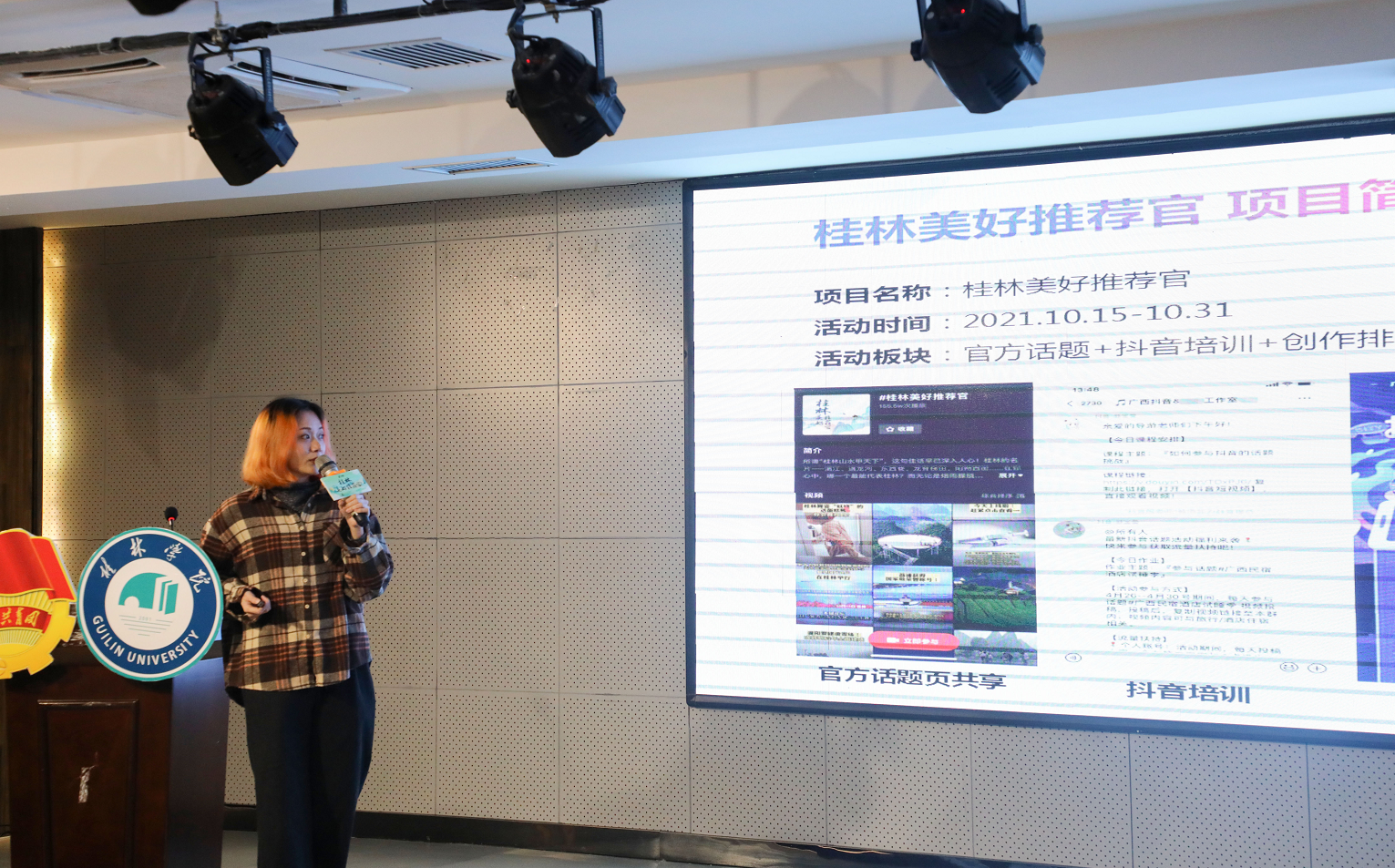 “桂林美好推薦官”話題活動(dòng)由自治區(qū)文化和旅游廳、共青團(tuán)廣西壯族自治區(qū)委員會(huì)、共青團(tuán)桂林市委員會(huì)、桂林旅游發(fā)展總公司、桂林旅游股份有限公司共同發(fā)起。桂林學(xué)院作為桂林唯一高校承辦了此次線下抖音校園分享會(huì)。桂林各高校抖音愛好者代表參加活動(dòng)。