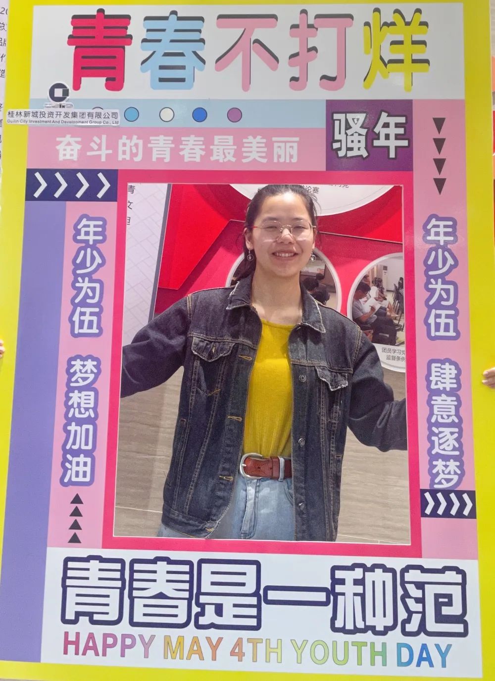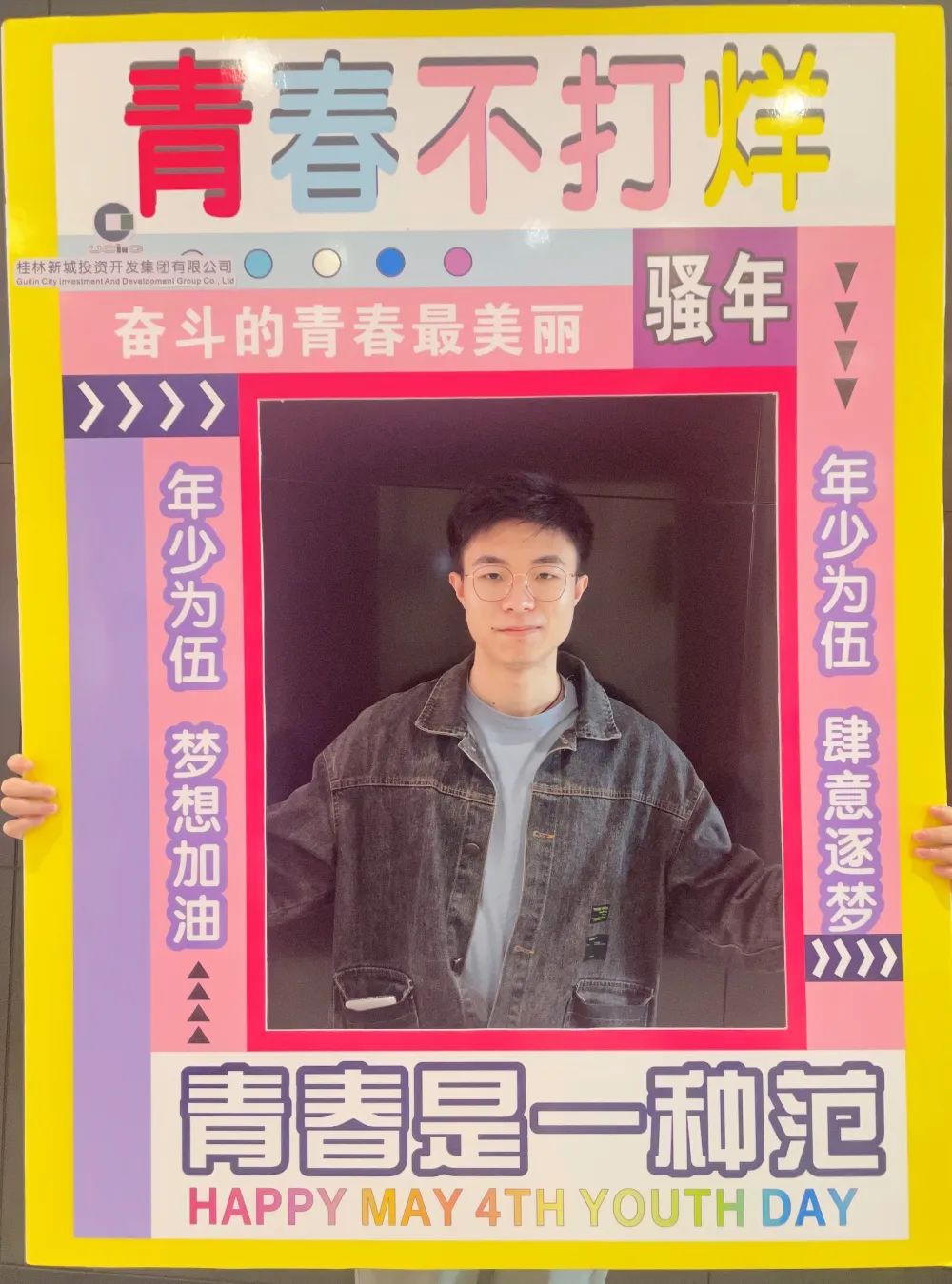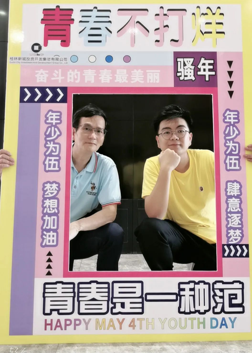 公司一樓大廳,團支部布置了“五四主題”畫框打卡活動,熱烈慶祝五四青年節(jié)到來。周道林帶頭打卡,并鼓勵全體員工積極參與拍照打卡活動,渲染喜慶的節(jié)日氛圍。