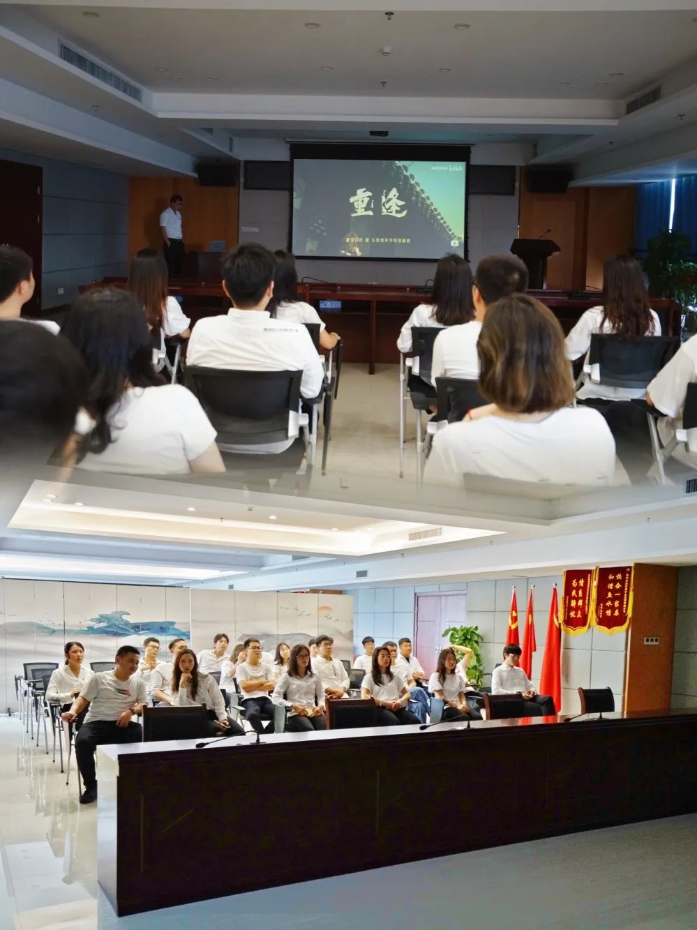 打卡活動結束后,全體團員在十樓會議室集體觀看了《重逢》,影片描述了青年一代不怕苦、不畏難、不懼犧牲,用肩膀扛起如山的責任,展現(xiàn)了青春激揚的風采。團員們紛紛表示要傳承“五四運動”的光榮歷史傳統(tǒng),自覺踐行“強國有我,請黨放心”的青春誓言,勇?lián)鷷r代的重任,奮力投身桂林新區(qū)的建設工作中,在火熱實踐中凝聚強大青春力量。