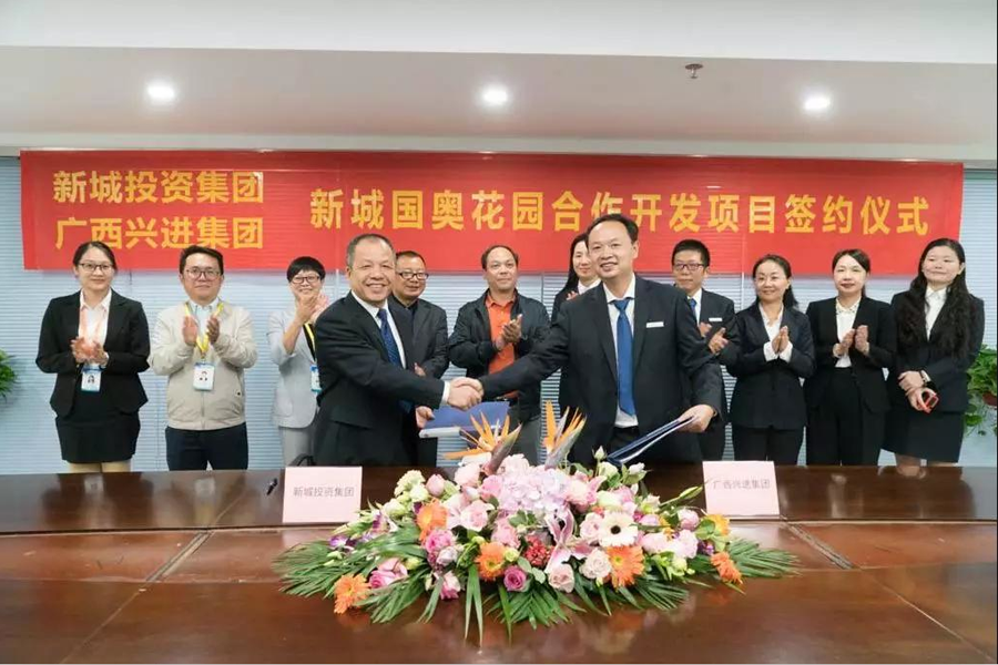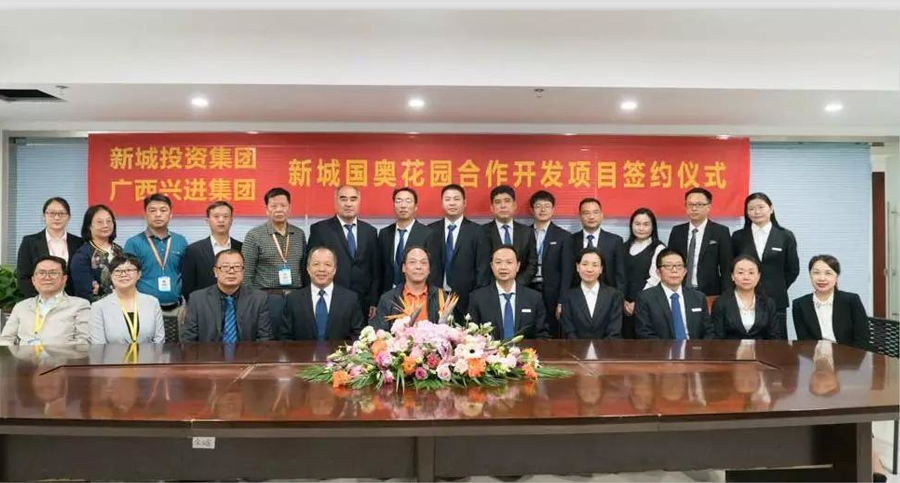10月11日,桂林新城投資開發(fā)集團(tuán)有限公司與廣西興進(jìn)實業(yè)集團(tuán)有限責(zé)任公司在新城投資集團(tuán)15樓會議室舉行新城國奧花園合作開發(fā)項目簽約儀式。桂林市臨桂新區(qū)管委會副主任覃正東出席并見證簽約,桂林新城投資開發(fā)集團(tuán)有限公司總裁周道林,廣西興進(jìn)實業(yè)集團(tuán)有限責(zé)任公司董事長羅欣分別代表雙方在合作協(xié)議書上簽字。