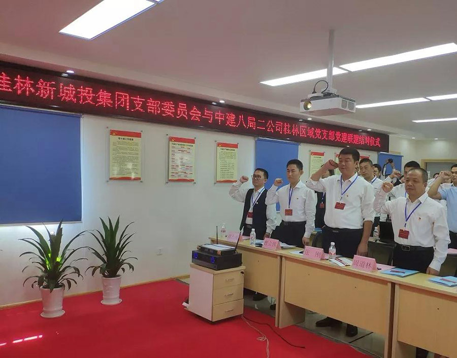 2018年10月30日上午,中共桂林新城投資開(kāi)發(fā)集團(tuán)有限公司黨支部與中共中建八局第二建設(shè)有限公司廣西公司桂林區(qū)域黨支部在桂林市臨桂新區(qū)基地項(xiàng)目部舉行黨建聯(lián)建結(jié)對(duì)儀式。