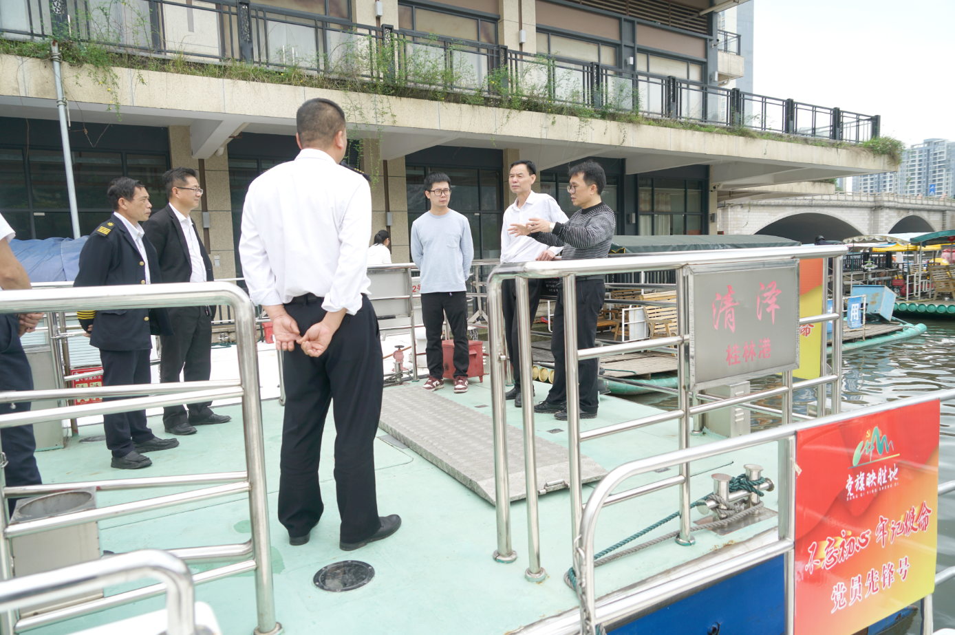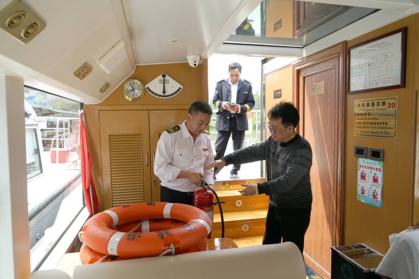 在新區(qū)核心區(qū)水系游船碼頭,檢查組一行認真檢查了各游船內(nèi)的滅火器材、消防設(shè)施、安全指示標志、疏散通道等,要求各負責人員認真做好汛期防汛安全工作,落實好安全管理人員責任,保證游船安全運營。