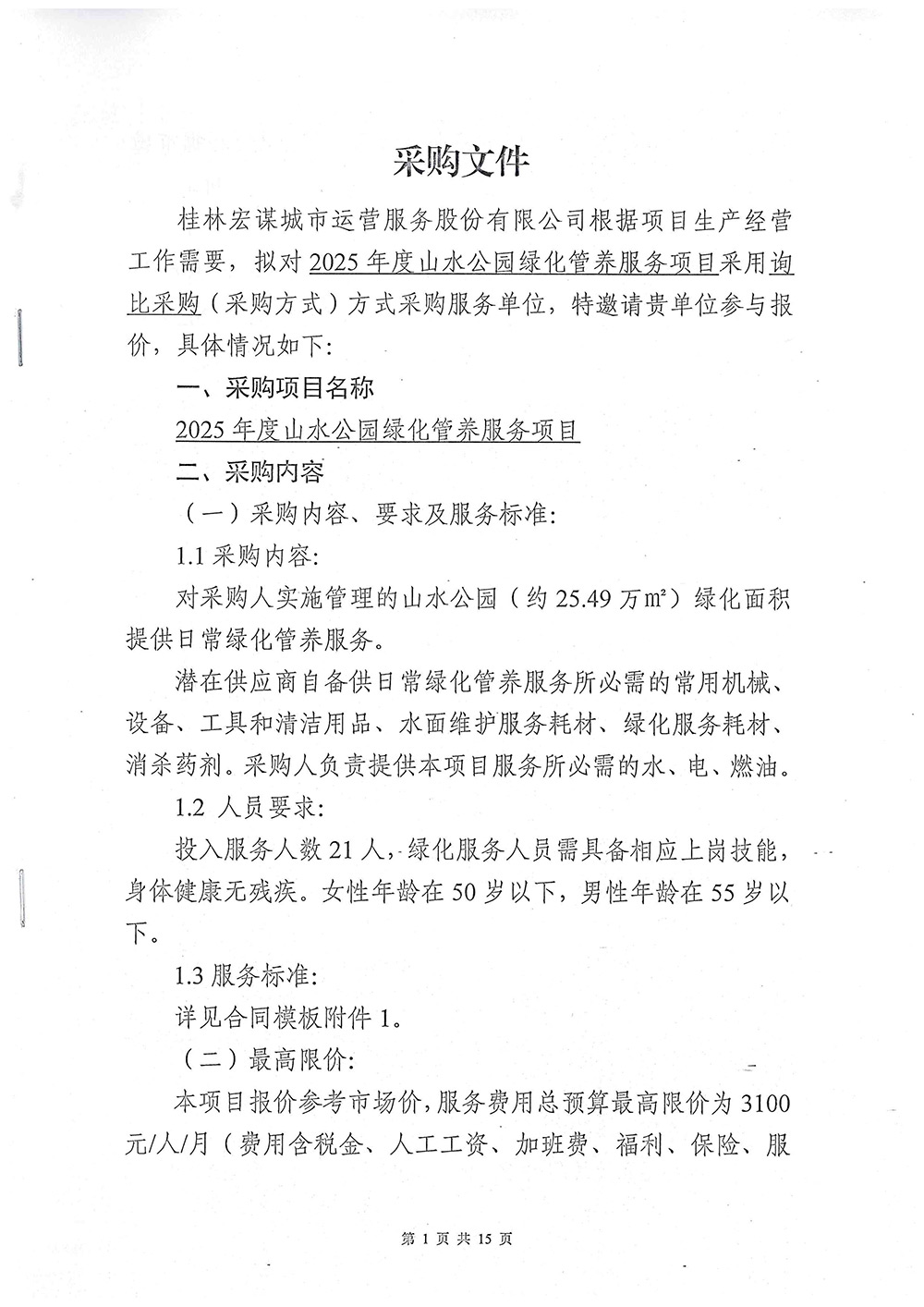 2025年度山水公園綠化管養(yǎng)服務(wù)項(xiàng)目采購文件