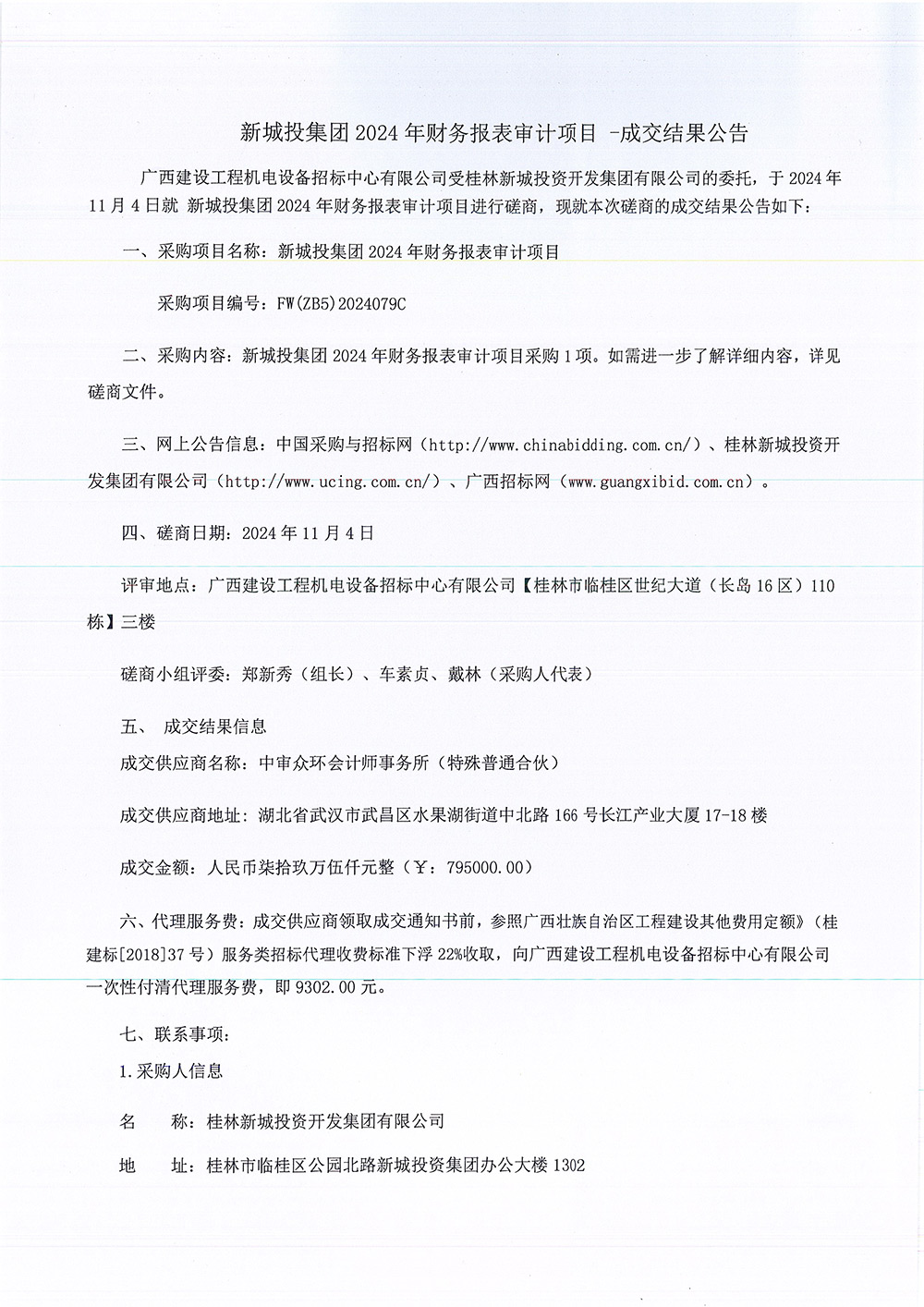 新城投集團2024年財務報表審計項目【FW(ZB5)2024079C】成交結(jié)果公告