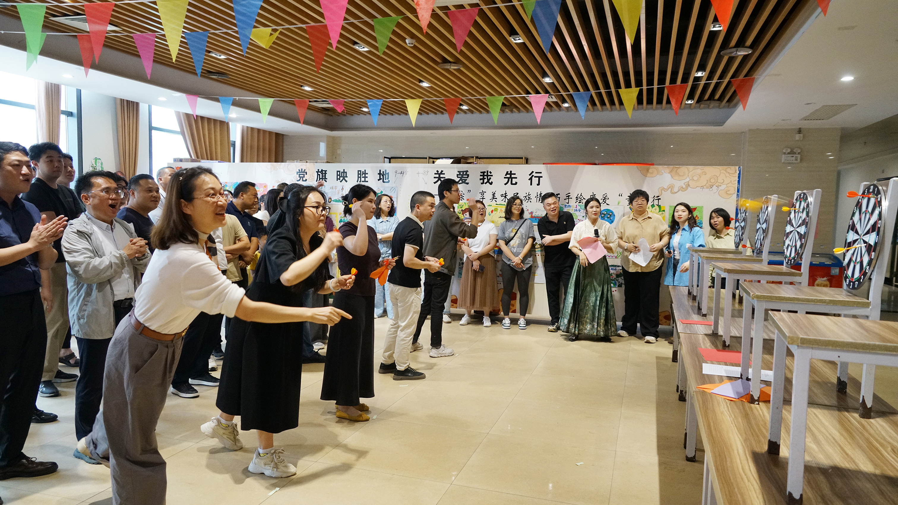 “家企同行·國風(fēng)非遺——民族文創(chuàng),與‘粽’不‘童’”趣味游戲挑戰(zhàn)環(huán)節(jié),將活動氛圍推向高潮。童年紙飛機、端午射五毒、趣味投壺三大趣味游戲讓職工與孩子都沉浸其中。在童年紙飛機游戲中,為了能讓紙飛機飛得更遠、更久,大家興致勃勃地嘗試著各種折法,隨后用力一擲,紙飛機在空中劃出一道道優(yōu)美的弧線,有的飛得又高又遠,有的則在空中翻轉(zhuǎn)幾圈后穩(wěn)穩(wěn)落地,看著自己折的紙飛機歡呼雀躍,仿佛回到了無憂無慮的童年時光。端午射五毒游戲則充滿了傳統(tǒng)韻味,大家手持飛鏢,瞄準靶心,每當(dāng)有人射中五毒圖案,周圍就會響起一陣歡呼聲,大家在歡聲笑語中感受著端午節(jié)的傳統(tǒng)習(xí)俗。趣味投壺游戲更是熱鬧非凡,參與者們瞄準壺口,或站或蹲,調(diào)整著姿勢和力度,隨著一次次投中,現(xiàn)場的氣氛也一次次被點燃,歡呼聲、加油聲此起彼伏。歡聲笑語回蕩在整個活動現(xiàn)場。各組成員在比賽中相互配合、相互鼓勵,展現(xiàn)了團隊合作的力量。最終,根據(jù)各組獲得的總分,評選出冠軍組,大家在歡樂中感受到了團隊的溫暖與力量。